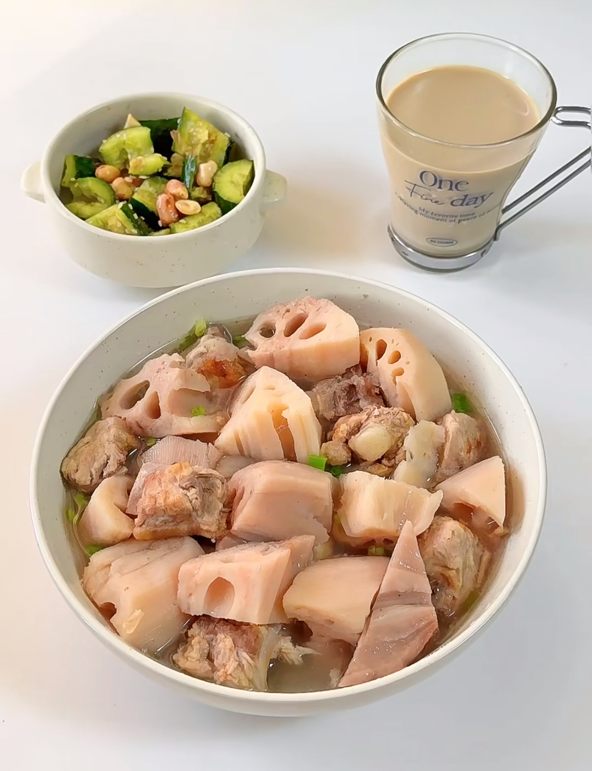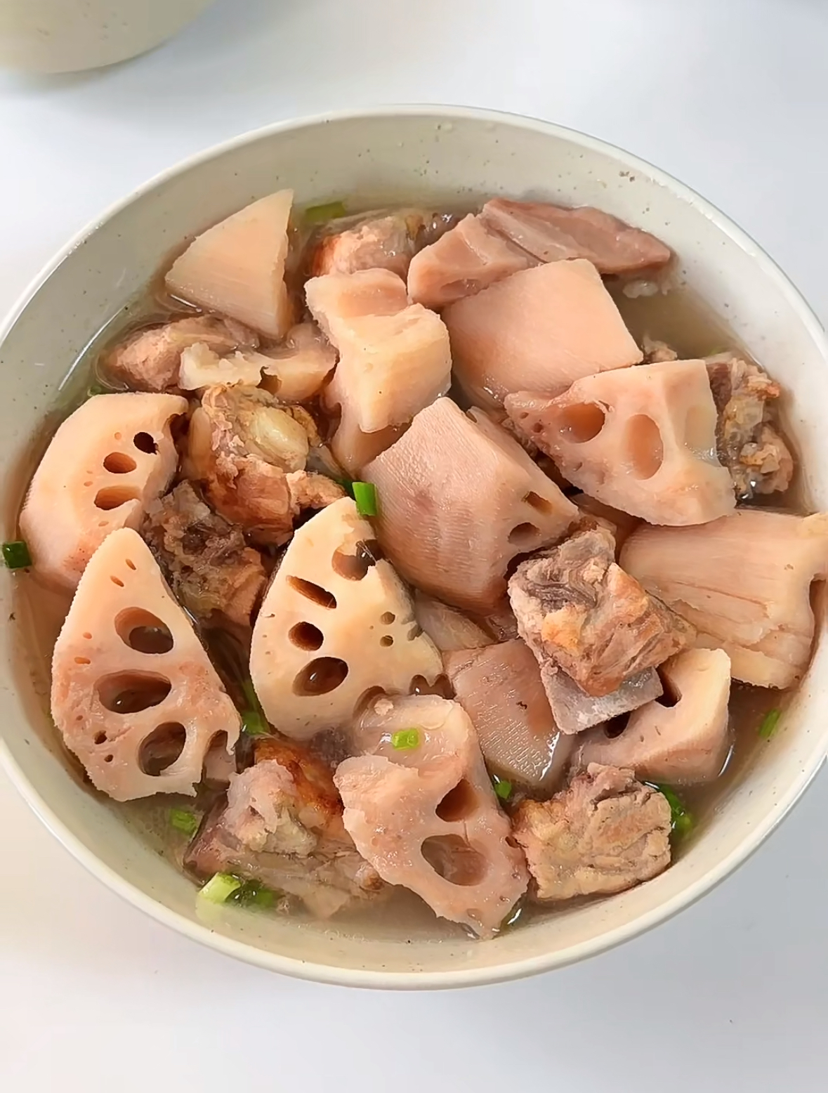 清淡不油腻清热凉血、健脾开胃、滋阴养血、补钙强身适宜季节秋季、冬季适宜人群一般人群,尤其适合贫血、体弱多病、食欲不振者不适宜人群血脂较高者应少食;产妇不宜过早食用1. 制作这道汤的关键是选择粉藕(通常表皮发红、藕身较瘦长、肉色发红的品种),这种藕淀粉含量高,炖煮后口感粉糯,非常适合煲汤。相反,表皮黄白色、肉厚色白的藕多爽脆,更适合凉拌或清炒。2.排骨应先用冷水下锅焯水,煮沸后撇去血沫,这样可以有效去除腥味,使汤色更清澈。开水下锅会使排骨外层蛋白质迅速凝固,内部的腥味物质不易析出。3.使用砂锅或瓦罐小火慢炖,最能释放食材的鲜香,使汤汁醇厚。若无砂锅,高压锅可以缩短时间(约20-30分钟),但风味略逊。注意避免使用铁锅,以免莲藕氧化变黑。以下是莲藕排骨汤的传统做法,1. 排骨500克,莲藕750克(选择粉藕),生姜、葱段适量,盐、胡椒粉等调味料。2. 将排骨洗净,剁成3-4厘米长的段。莲藕刮尽表面的粗皮(不要用铁器),用刀背拍破再切块,这样更容易出味。3. 锅内放适量水,放入部分生姜、葱和料酒,烧沸后下入排骨,氽水后捞出待用。4. 将排骨和莲藕放入汤锅(砂锅为佳),加入足量清水和剩余的生姜、葱。大火烧沸后,转小火慢炖1-1.5小时,直至排骨软烂、莲藕粉糯。5. 出锅前10分钟左右再加入盐调味。过早放盐可能导致肉质变柴,且长时间煲煮盐可能产生微量有害物质