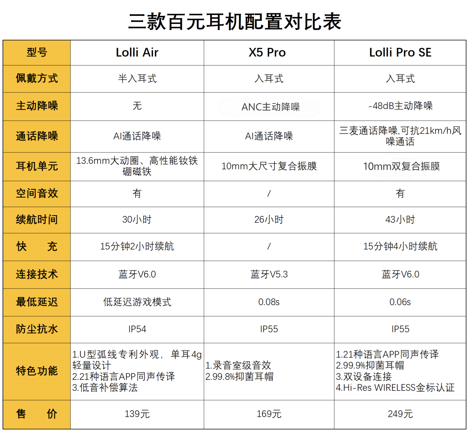 你身边的朋友都在用什么真无线耳机呢?几年前的时候,可能一款普普通通的真无线耳机就要卖到大几百甚至上千,而到了今天,唯价格论似乎已经有些过时了,很多体验非常不错的好耳机可能价格也才刚刚百元出头。为了给百元耳机正名,这段时间我也实测了漫步者 的3 款百元级耳机:Lolli Air、X5 Pro和Lolli Pro SE,如果预算有限,那么不妨跟着我的体验看看哪一款更适合屏幕前的你。