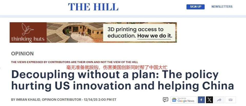 美国国会山报称,美国贸然对中国推动脱钩战略纯属欠考虑,三大原因让美国陷入被动局面。