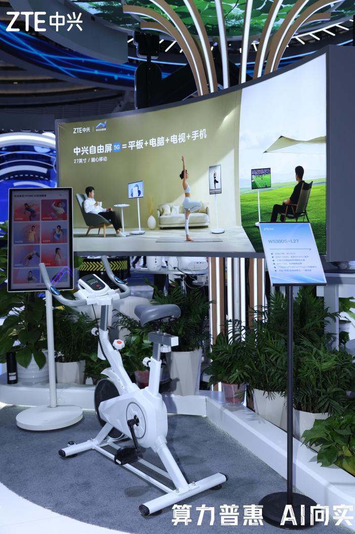 在另一大展台板块“AI for All,心所想 爱所向”,中兴通讯展示了更多直接服务民众的全生态终端智慧产品,涵盖了自由屏、云笔电、云PAD在内的“大-中-小”屏全方位AI产品。