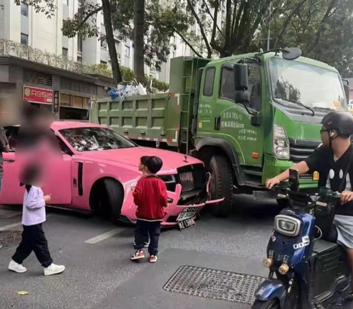 撞上粉色劳斯莱斯后,货车司机瑟瑟发抖 豪车女主人:超出保险部分我来担