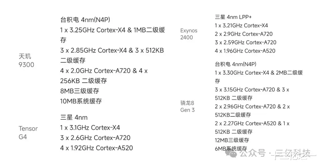 如果是4nm,参考三星Exynos 2400、谷歌Tensor G4、骁龙8Gen3、天玑9300,这些ARM架构的处理器基本采用的是X4超大核+A720大核+A520小核,那么玄戒O1即便是采用全大核,性能上限也就是骁龙8sGen4的性能,而这款处理器目前定位中端,机型定价两千以下,这一幕和当年澎湃S1一样,定位尴尬。