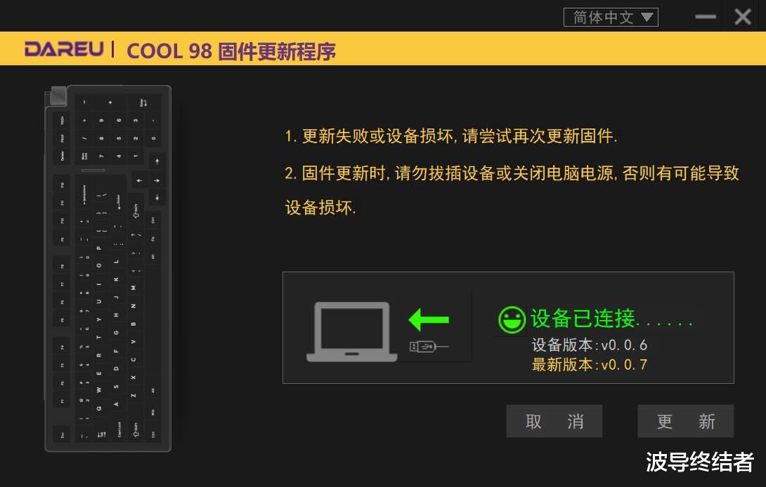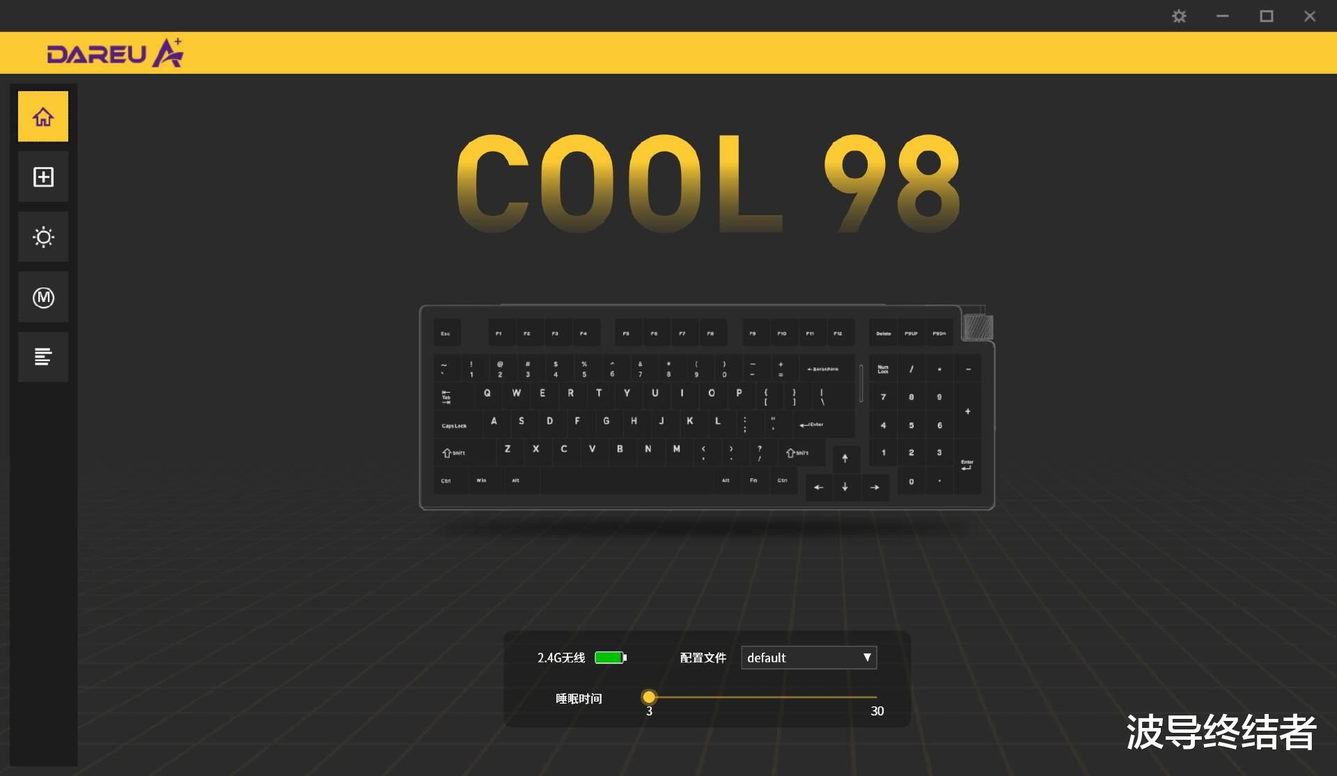 总的来看,达尔优COOL98这把键盘的做工,用料,灯效和驱动功能都不错,金属滚轮、灯条、电量显示的设计也兼具美观和实用。最后再更新一下驱动,把自定义录制或者手动编辑缺的几个键补上就完美了。