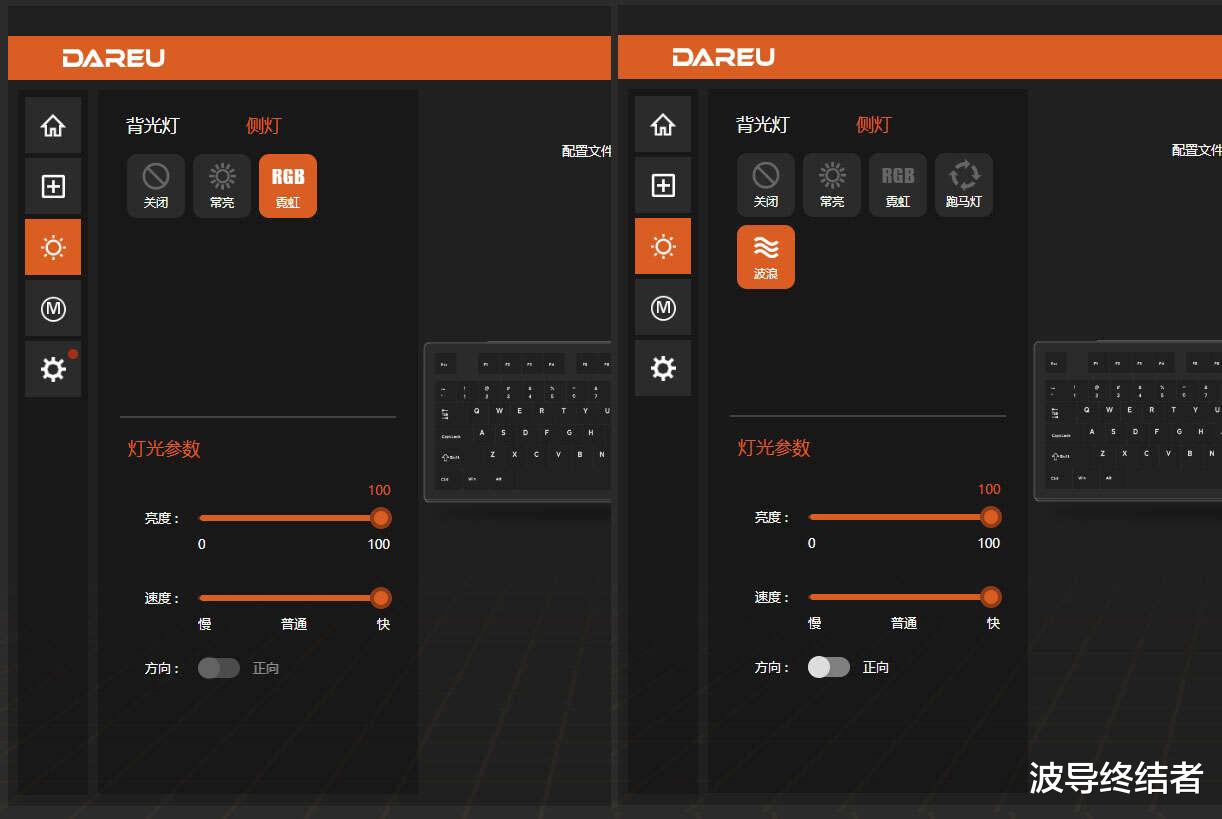 比如侧灯设置方面,更新固件前只有两种方案,只能同时亮起一个颜色,有点浪费了这49cm,37颗RGB的星环灯带。更新之后就舒服多了。