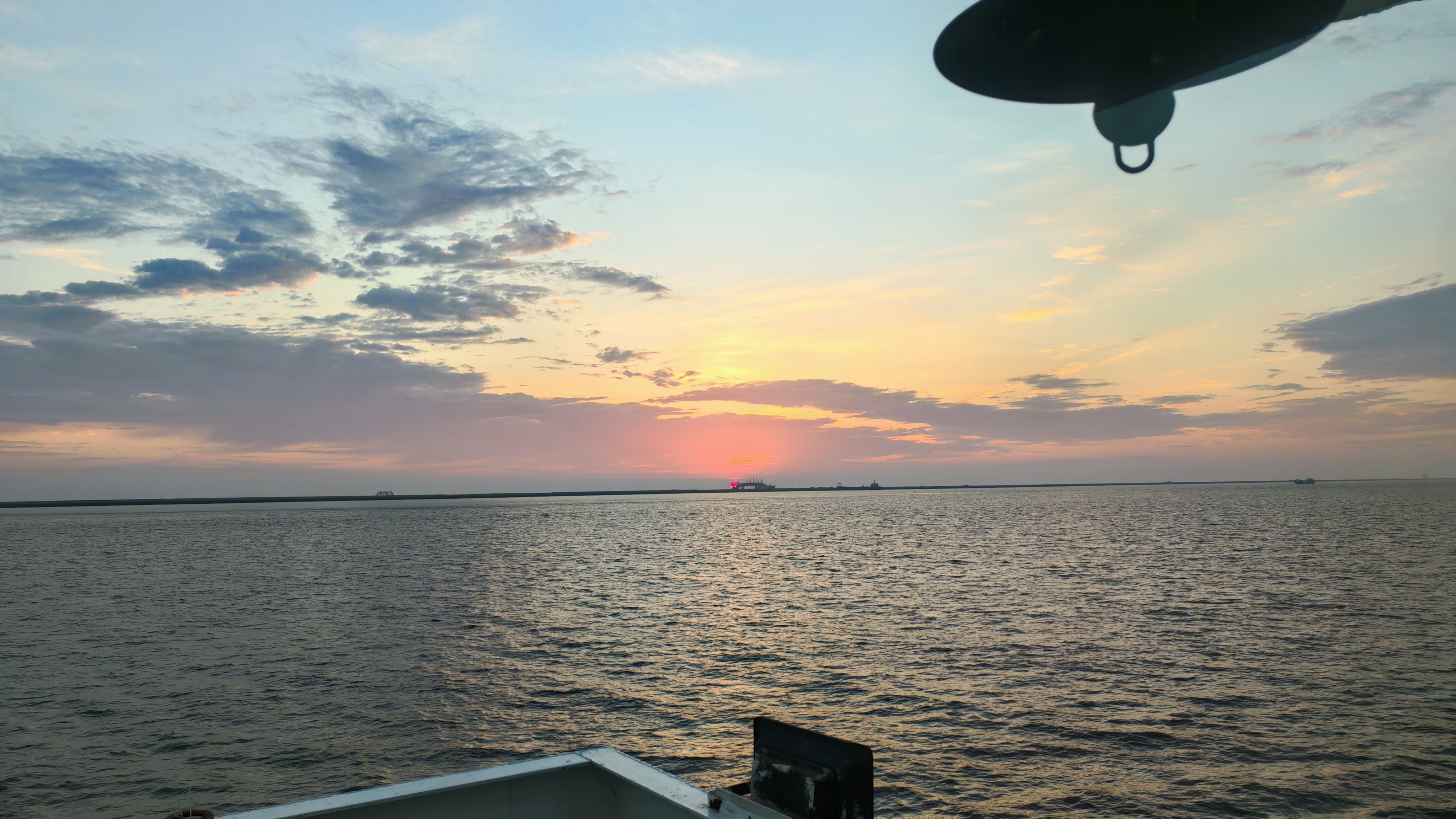 天还未完全破晓,天际线便悄悄晕开一抹温柔的橘粉,沉寂了一夜的水面,静静等待着第一缕阳光的降临。当那缕娇阳穿透薄薄的晨雾,倾洒在粼粼波光之上,我们迎着万丈晨光,缓缓开航,眼前的一切,美得让人移不开眼。