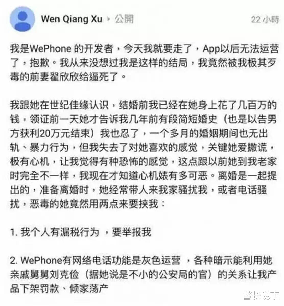 生命消逝,正义降临2017年9月7日凌晨,苏享茂在社交媒体上发出遗书,称自己被“极其歹毒的前妻翟欣欣给逼死了”。凌晨5点左右,他结束了自己的生命,年仅37岁。