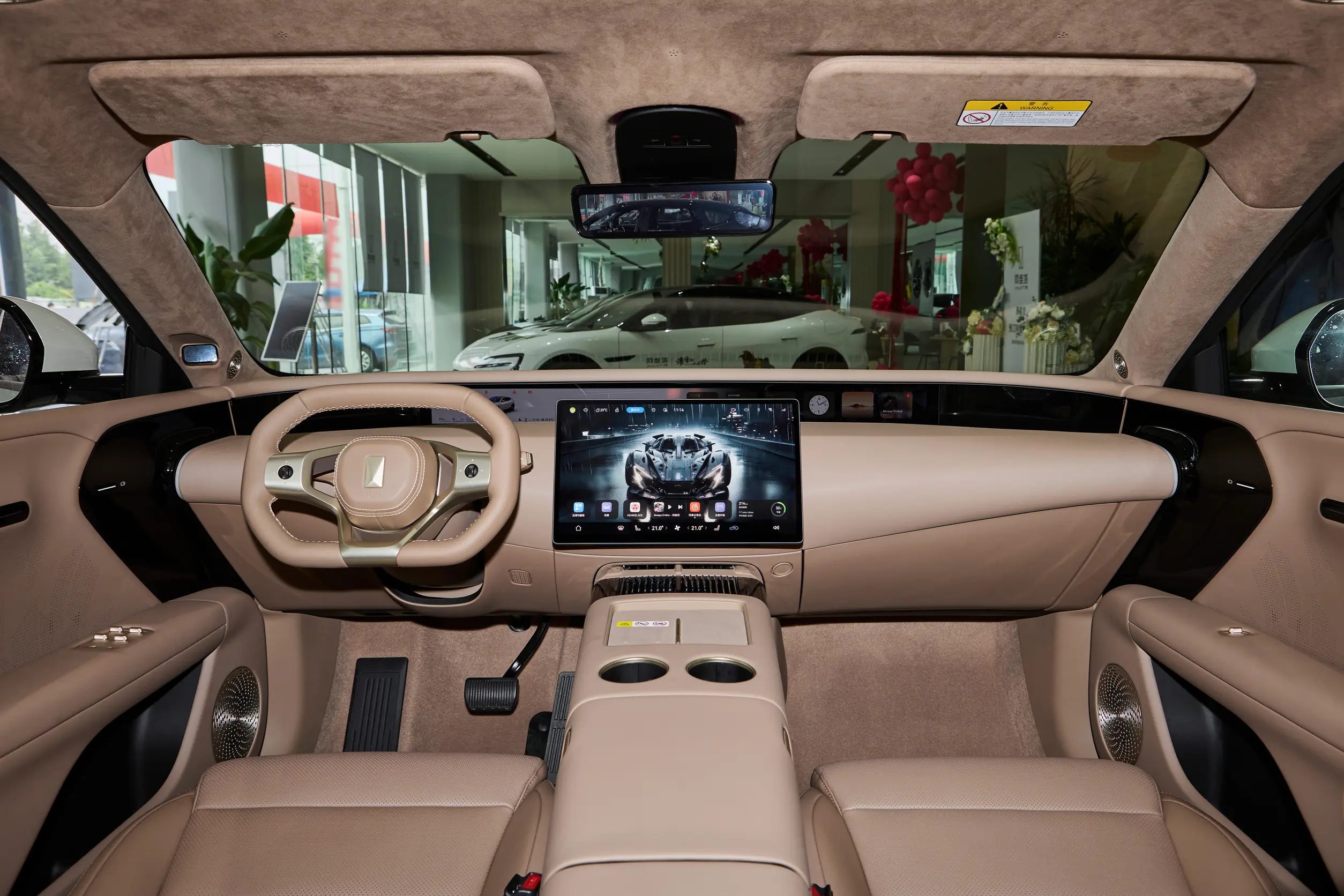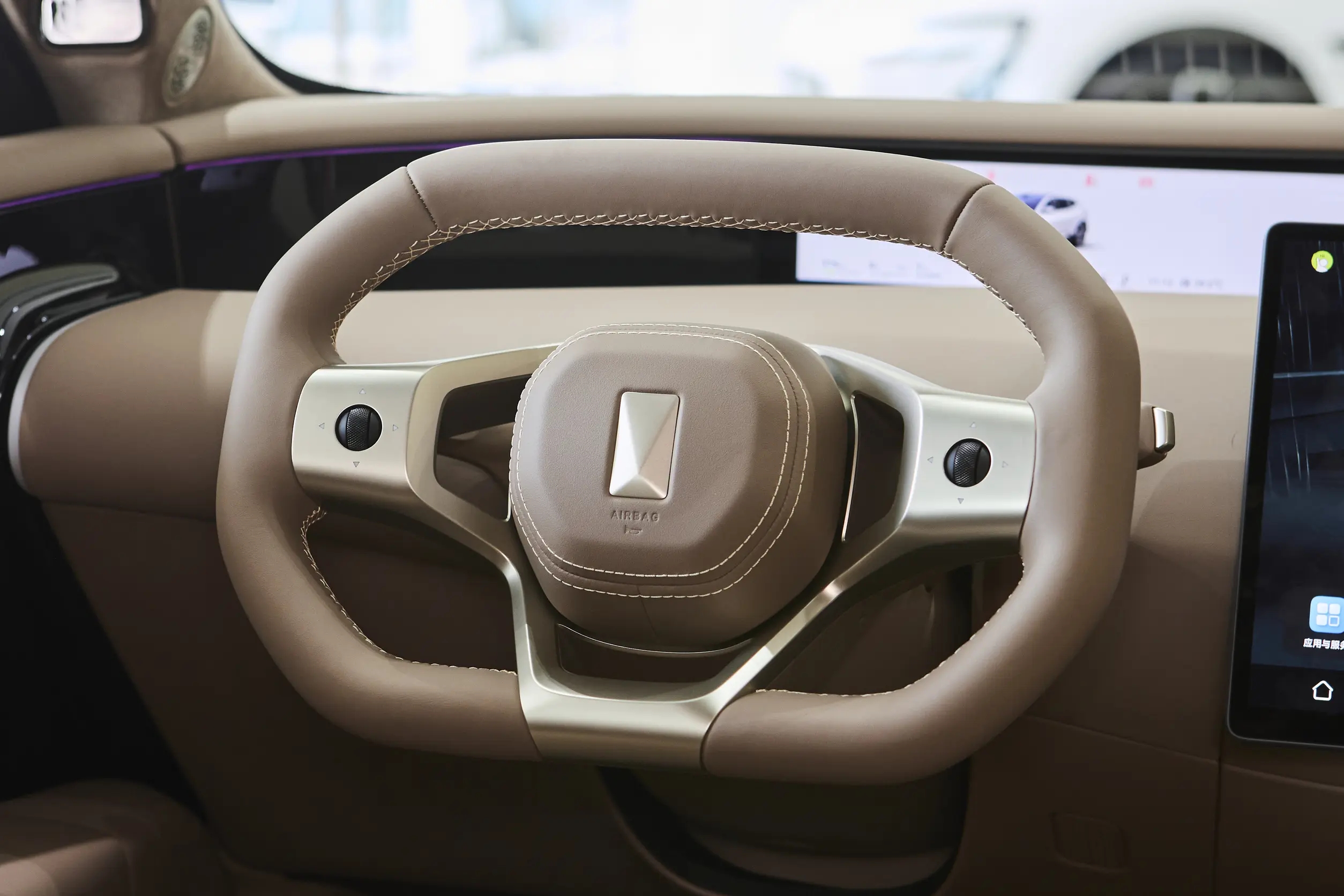 另外,座舱还提供了“深紫、白棕、岩棕”三种配色,大面积皮质面料与类麂皮顶棚覆盖,营造出不俗的豪华质感。