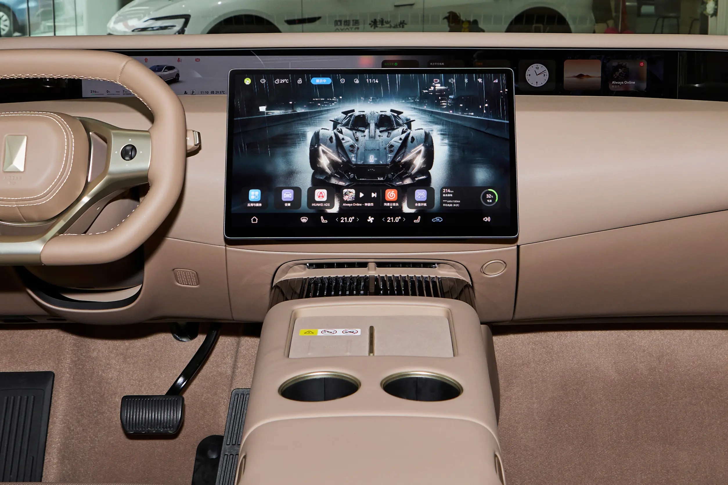 车机部分,2026款阿维塔 07搭载了鸿蒙座舱HarmonySpace 5(基于MoLA架构研发),融合通用大模型与导航、车控等五大板块,功能覆盖卫星导航(高德/Petal)、道路救援、HUAWEI HiCar互联、面部/声纹识别、四音区语音控制等。
