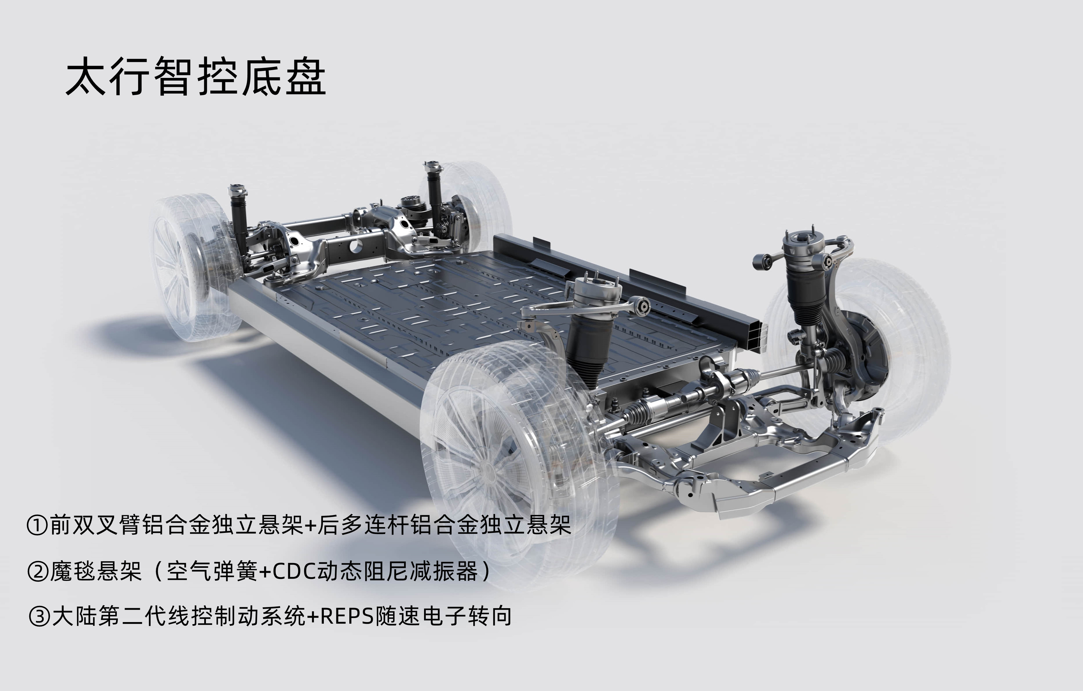 动力参数:1.5T增程器(最大功率115kW);后驱版本(单电机最大功率231kW,最大扭矩333N·m,最高车速190km/h)、四驱版本(前后双电机综合功率362kW,最高车速190km/h)。续航及补能效率:39.05度骁遥增·混磷酸铁锂电池组(3C充电倍率,CLTC纯电续航245公里,综合续航1115公里,电池Soc 30%-80%需15分钟左右);52.01度骁遥增·混磷酸铁锂电池组(5C充电倍率,CLTC纯电续航333公里,综合续航1200公里,电池Soc 30%-80%需10分钟左右)。(二)纯电版车型