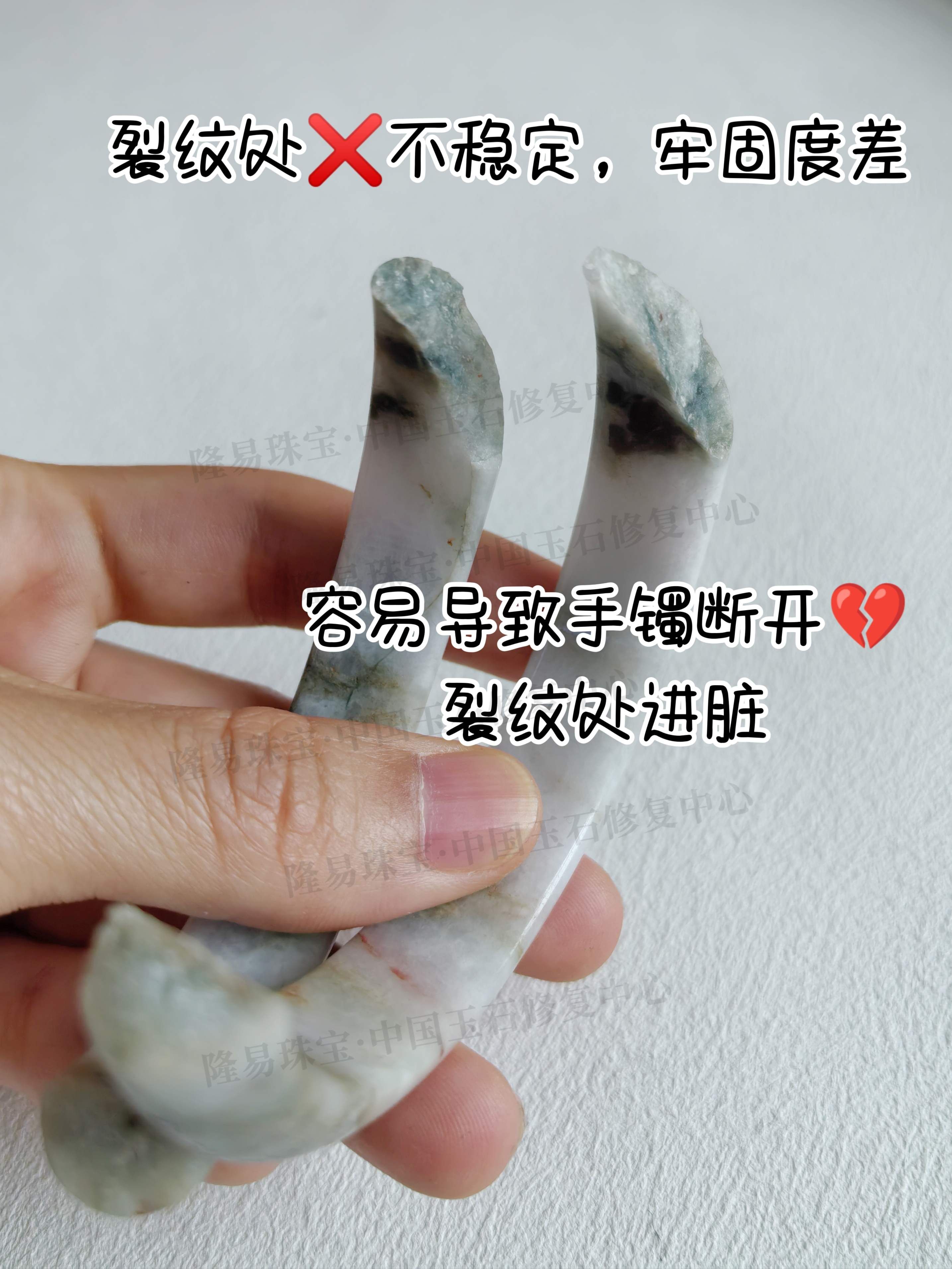 如果你有裂纹的镯子,很喜欢不舍得放弃,老师傅作为专业的珠宝玉石修复师,温馨提示能尽早修复就不要拖着哦!