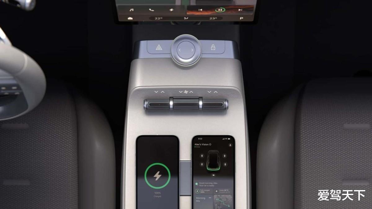 车尾部分,细长的灯组和分段式灯带非常抢眼,尾门中间是可发光的“SKODA”字母标识,车顶还配了一个后扰流板,整体造型既简洁又有辨识度。更贴心的是,斯柯达Vision O概念车还在后备厢设计了充电线专属收纳空间,并在每个车门都里都藏着一把雨伞,像磁吸无线充电底座、便携蓝牙音箱和车载冰箱也都配备。