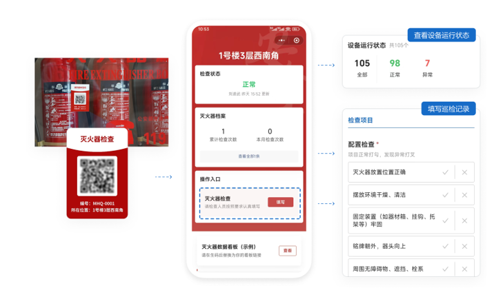 草料二维码提供的是一套以二维码为入口的数字化管理系统。每一个消防设备都拥有一张二维码,就像它的电子档案,记录从巡查到整改的全过程。