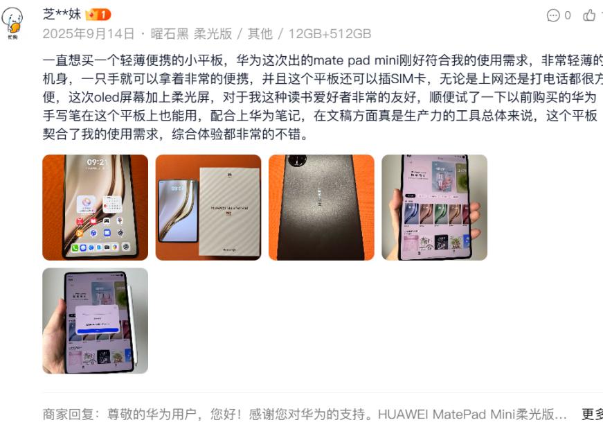 一款产品能成为爆款,其根本原因在于出色的产品力。从社交平台、电商平台评论区中,我们能发现华为MatePad Mini的原因。