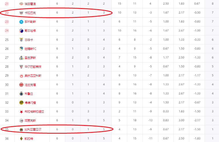 欧冠小组赛第6轮战罢,积分榜上一组刺眼的对比引发了全球球迷的热议:总身价仅2400万欧元的阿塞拜疆球队卡拉巴克,在遭遇两连败后竟仍高居第22位,牢牢占据欧冠附加赛席位;而身价高达2.8亿欧元的西甲劲旅比利亚雷亚尔,却以1分惨居第35名,基本提前出局。