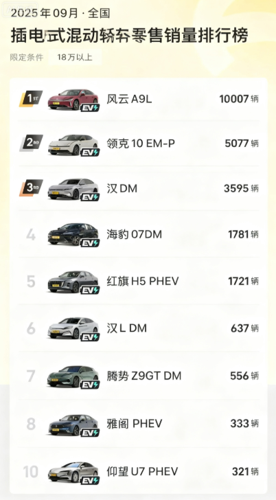 中国汽车市场的混动化进程正在不断提速,尤其是在中高端轿车领域,插电混动产品已成为不少消费者从燃油车转向纯电过程中的重要选择。然而,市场供给的丰富并未降低用户决策的难度,相反,产品力的高度同质化让“如何选”成为新的难题。领克10 EM-P的出现,在一定程度上打破了这一局面。该车凭借全系标配四驱与激光雷达等差异化配置,在九月插混中大型车销量榜中稳居前三,并在18万元以上高端插混轿车榜单位列第二,展现出在激烈竞争中的独特吸引力。