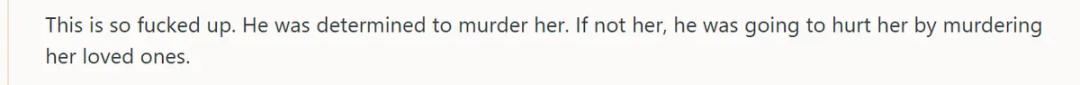 “这事真的太离谱了。他就是铁了心要杀她:杀不到她,就用杀她在乎的人来折磨她。”