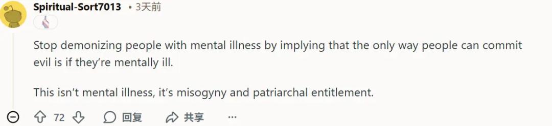 这不是精神病,这是厌女,是特权心理,觉得我所有要求都应该被满足。”