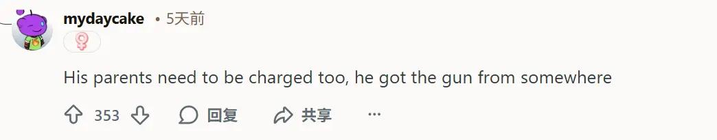 “他父母也应该被调查,这把枪来源究竟是哪里。”