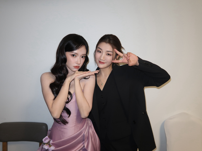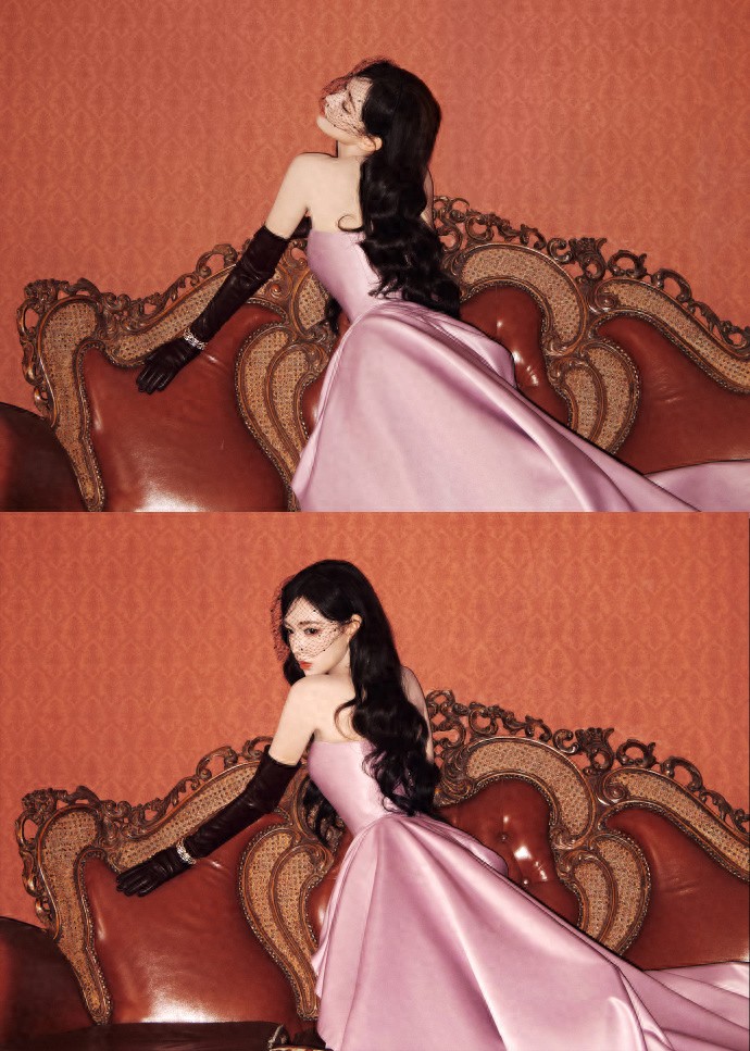 程潇粉色抹胸裙穿搭写真,戴皮手套太迷人了