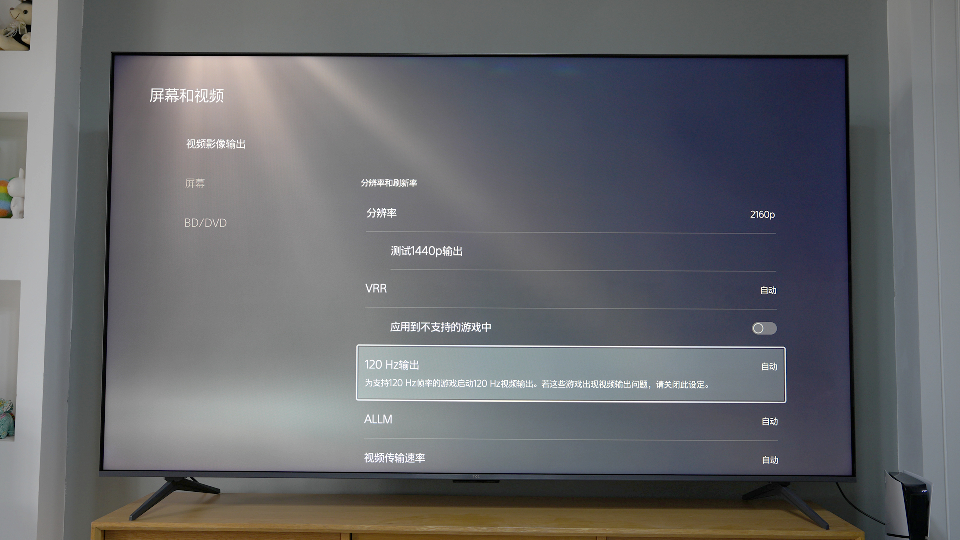 电视的原生刷新率为4K 144Hz,可支持PS5的4K 120Hz输出。