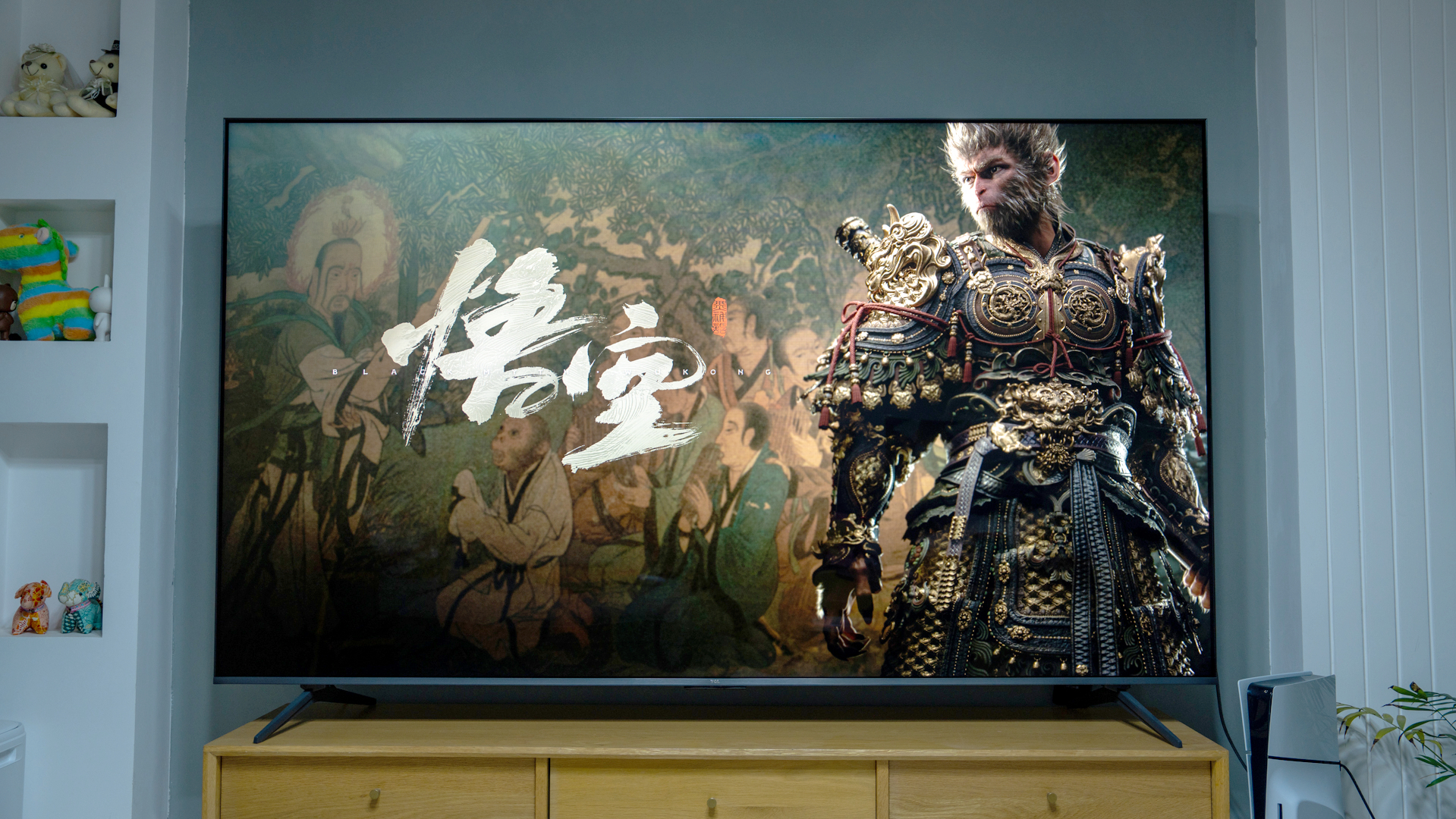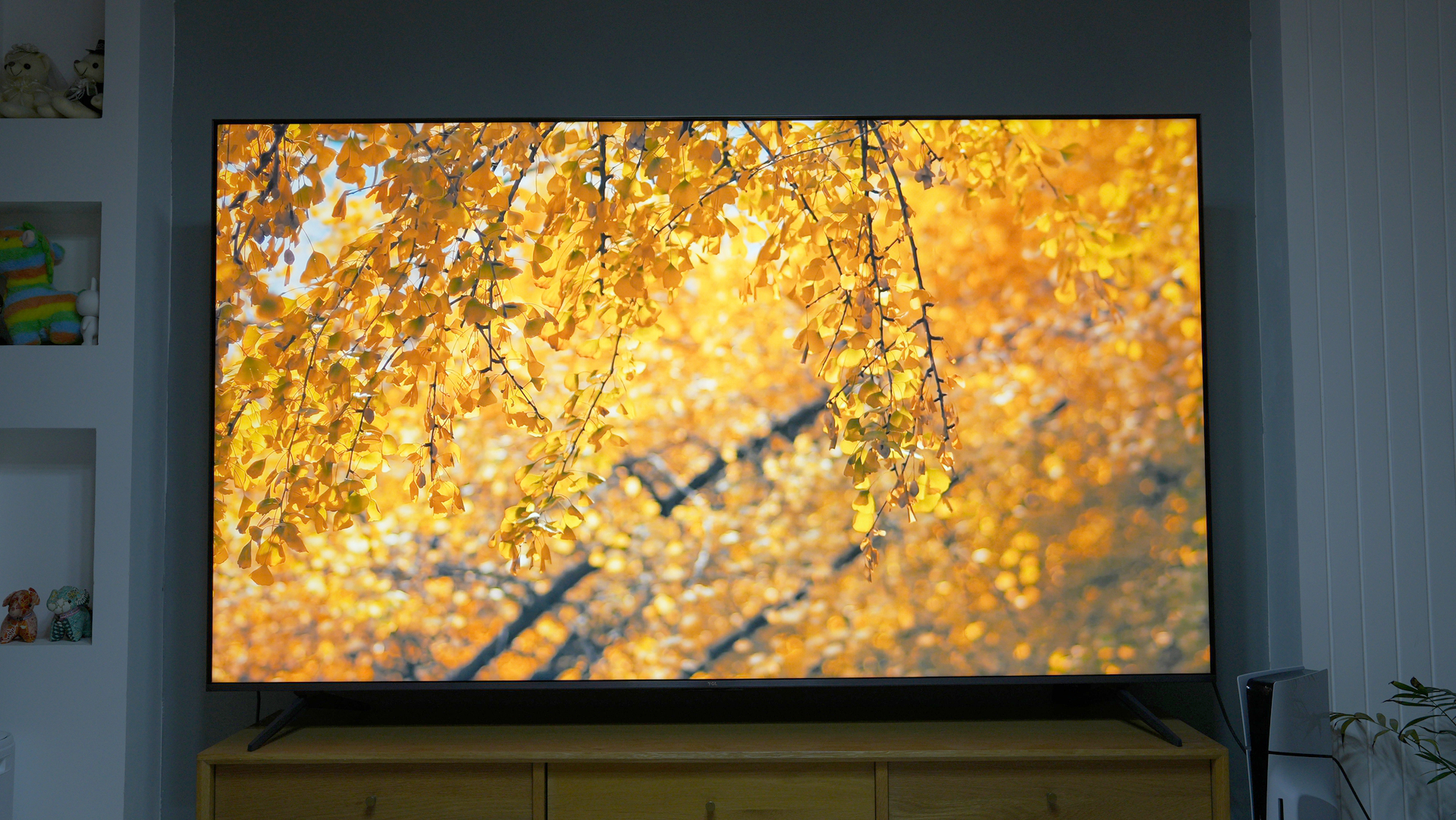 亮度对比:通过与普通电视的对比,可以明显看到,高峰值亮度的85T7L Pro的画面层次更好,也更透亮。