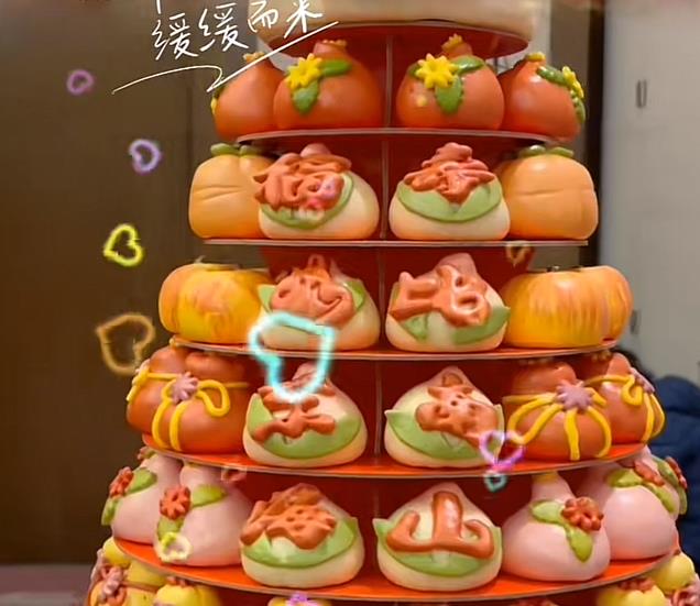 庆生环节,吴京一家人特地为老爷子准备了两样东西,一样是三层带寿桃的蛋糕,另外一样则是七层大寿桃,从上往下,一层层增加,看起来不但气势十足,而且豪横感满满。