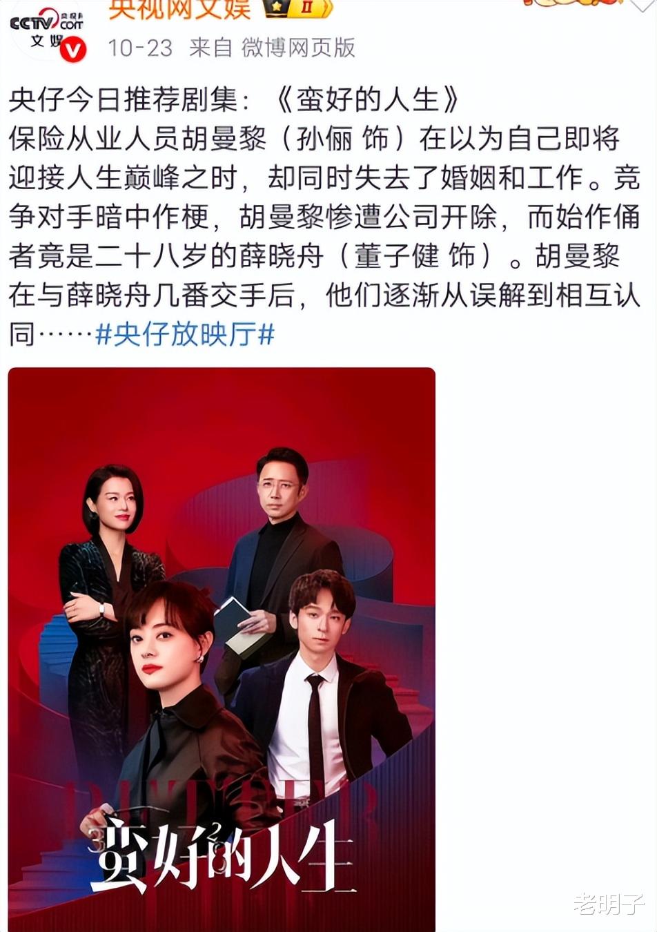 随手查阅孙俪近况,发现她又有新剧在央视推荐播出,这是一部现代戏《蛮好的人生》,在里面饰演一位保险员。