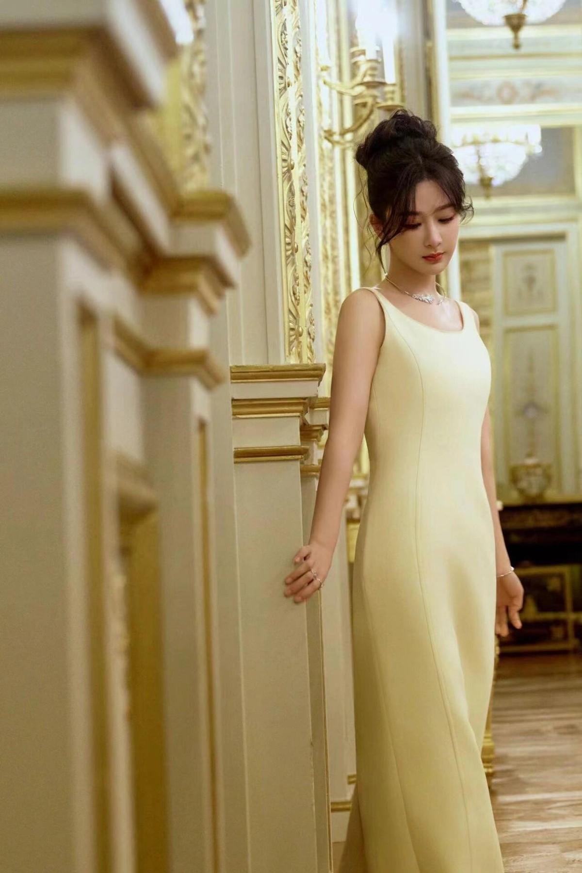 白色的赫本风小礼服,穿上身以后真的是圣洁而又贵气,这件小礼服的版型非常的不错,虽然是吊带的款式足够性感,但是整体的裁剪和包裹性都很好,刚好可以遮住副乳的位置。裙子的裁剪也很衬托腰线,把杨紫曼妙的身材完全展现了出来,大大的裙摆也可以显得腿很长,搭配上大露背的设计,真的是美的让人离不开眼睛。