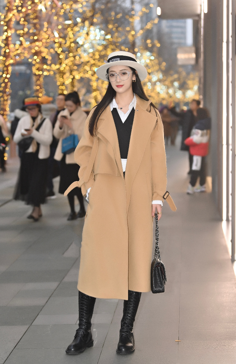 卡其色风衣是冬日衣橱的必备单品,这位小姐姐的穿搭就很好地诠释了它的魅力。长款卡其色风衣剪裁利落,线条流畅,展现出优雅干练的气质。内搭黑白配色,经典又时尚。黑色长靴为整体造型增添了一份酷感,拉长了腿部线条,让身姿更加挺拔。手里拿着黑色链条包,走在装饰着灯光的街头,仿佛是都市中的时尚精英,优雅又自信,轻松打造职场与日常皆宜的穿搭风格!👠