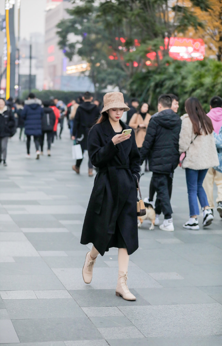 宝子们,冬日街头也能成为你的时尚T台!这位小姐姐身着黑色长款大衣,简约的设计尽显大气优雅,腰带一系,瞬间勾勒出纤细腰身。搭配浅色短靴,增添了一份柔和与精致。头上戴的渔夫帽是点睛之笔,不仅保暖还为整体造型增添了一份文艺气息。手里拿着手机,漫步街头,仿佛是从时尚杂志中走出来的都市丽人,简约又不失高雅,轻松打造冬日氛围感穿搭!🧥