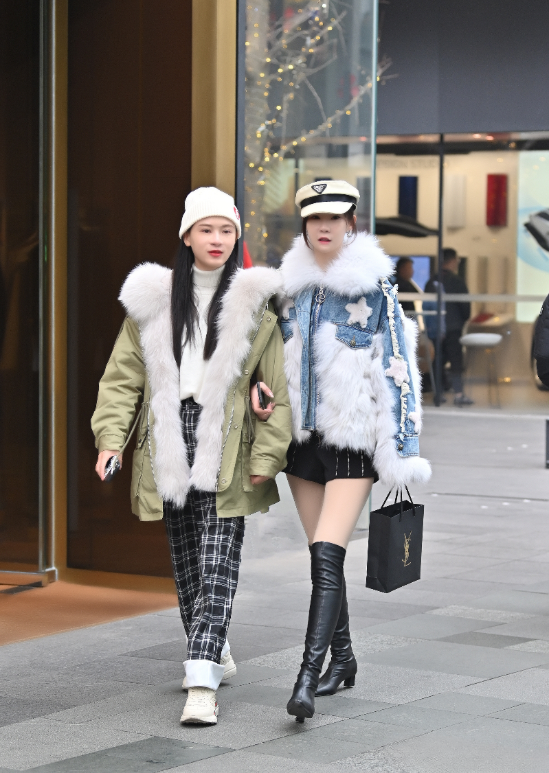 和闺蜜一起出街,当然要穿得美美哒!这两位小姐姐的穿搭就很有借鉴意义。左边小姐姐的绿色派克大衣,毛茸茸的大领子温暖又时尚,搭配黑白格子裤和白色运动鞋,休闲又舒适。右边小姐姐的牛仔派克大衣更是吸睛,白色毛领与星星图案的搭配,甜美又个性。下身搭配黑色短裤和黑色长靴,露出修长美腿,时尚感十足。两人手牵手走在街头,就是一道亮丽的风景线,时尚保暖两不误!🌟