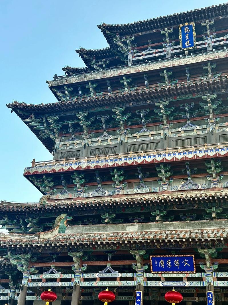 必玩3个"有温度的点",拒绝走马观花主楼:"盛唐建筑的‘活化石’"主楼高73.9米,采用"明三暗七"结构,斗拱、飞檐、琉璃瓦均是仿唐工艺。别只数楼层,要听导游讲"建筑密码":"这楼的‘鸱吻’是‘黄河龙首’造型,象征‘镇河护楼’;楼梯的‘莲花纹’地砖,是‘步步生莲’的吉祥寓意。你看这‘白日依山尽’的匾额,是启功先生题的,笔力遒劲,像盛唐的气象!"孩子指着斗拱问:"这木头咋不晃?"导游笑着说:"古人用‘榫卯结构’,不用一根钉子,比现在‘钢筋水泥’还结实!"