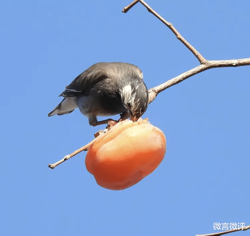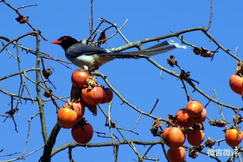 把柿子留在树上给鸟吃,是一个古老的习惯。不但能够提升生态环境,还成为了鸟儿的过冬粮。既保护了自然,又善待了生命。