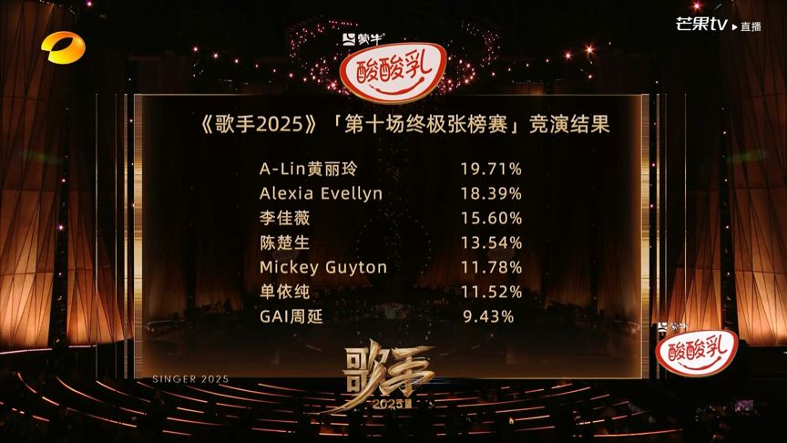 而GAI周延的淘汰结果引发巨大争议。他融合《浏阳河》的方言说唱《故湘·风》,现场票数第四(15%),却因云端票仅4.65%垫底,综合排名第七出局。乐评人“声理学”直言:“GAI用市井烟火唱出家国情怀,淘汰是节目组对流量的妥协!”网友更质疑节目操纵票数“保送外籍歌手”——