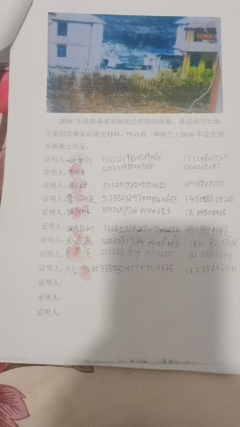2015年,和顺兰被纳入当地易地扶贫搬迁范围。2016年,工作人员曾表示,美丽公路红线外的异地搬迁房屋可“抓紧建设”。2017年3月,她在原有房屋基础上续建第三、四层。期间,当地分三次向其发放易地搬迁建房补助款,合计84,525元,最后一笔款项于2017年12月房屋建成后拨付。