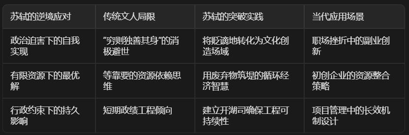 这场修炼的本质,是将苏轼的“诗意实用主义”转化为现代人的生存智慧。当你能在限制中创造可能,在失意中保持审美,便是对“苏堤精神”的当代传承——不是模仿其文人雅趣,而是继承那种“将淤泥变通途”的生命韧性。