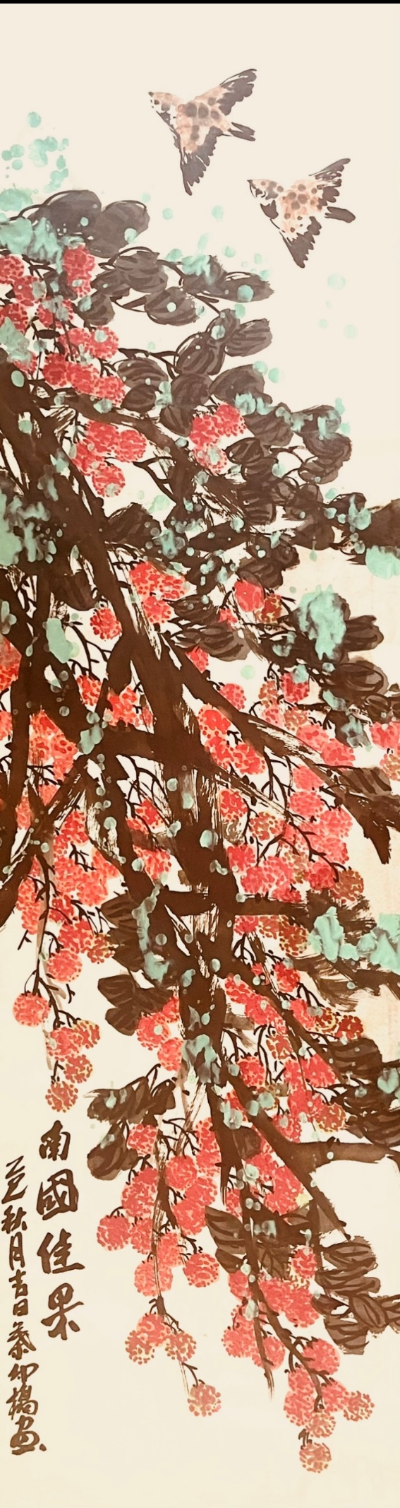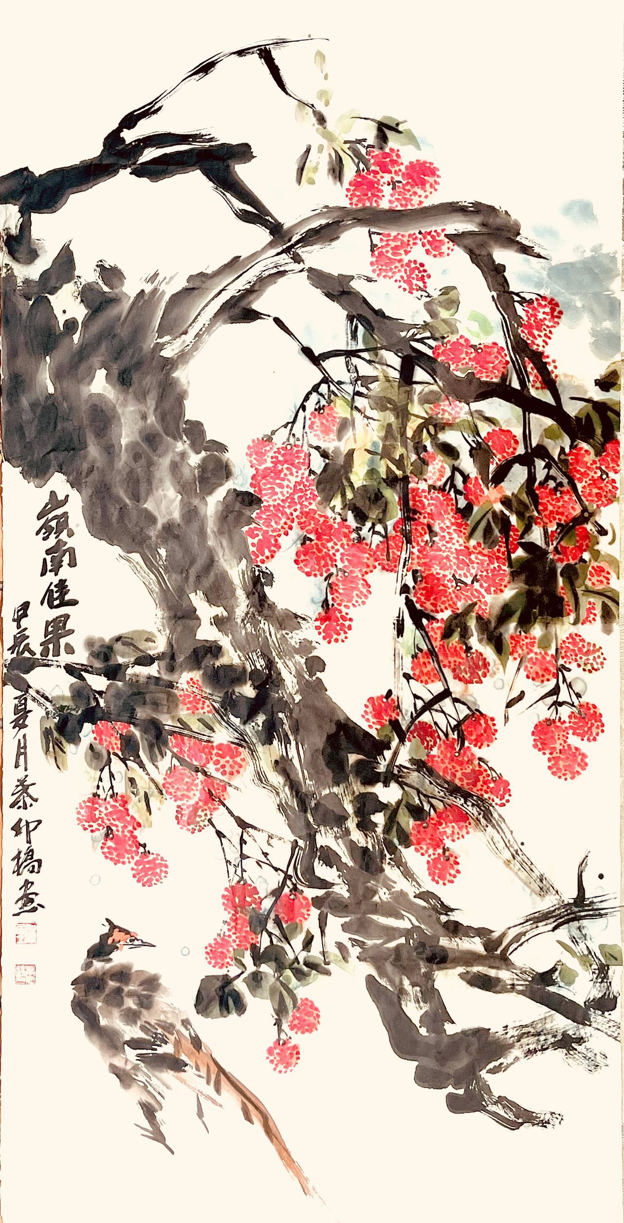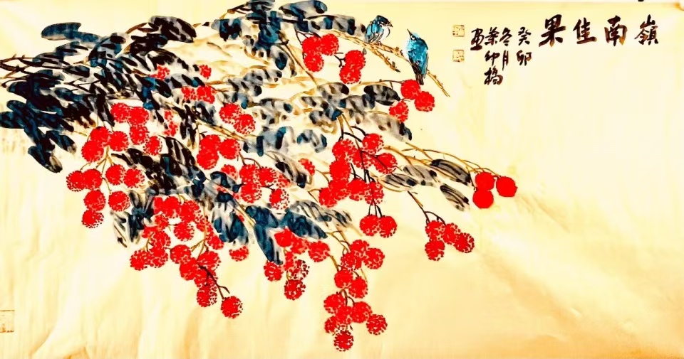 在全球化语境下,叶仲桥的荔枝艺术呈现出更为复杂的文化意义。作为西班牙皇家艺术家协会外籍会员和加拿大维多利亚皇家艺术学院客座教授,叶仲桥实际上扮演着中国文化使者的角色。他的荔枝画作不再仅是宣纸上的水墨,而成为了一种"文化翻译"的媒介——通过国际艺术界普遍理解的形式语言,传达中国特有的文化内涵与审美情趣。这种跨文化转译的成功,很大程度上得益于叶仲桥对传统国画语言的创新性运用。他打破了传统花鸟画的程式化表现,赋予荔枝以现代构成的张力与视觉冲击力,使其能够超越文化隔阂,引发普遍的情感共鸣。