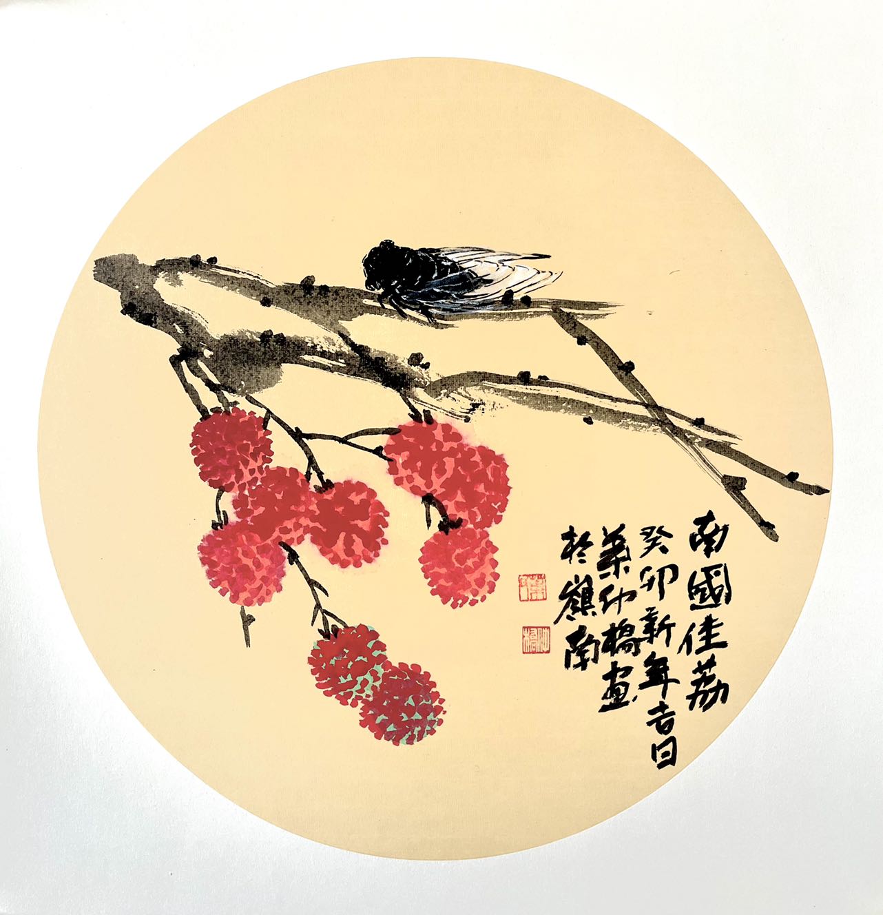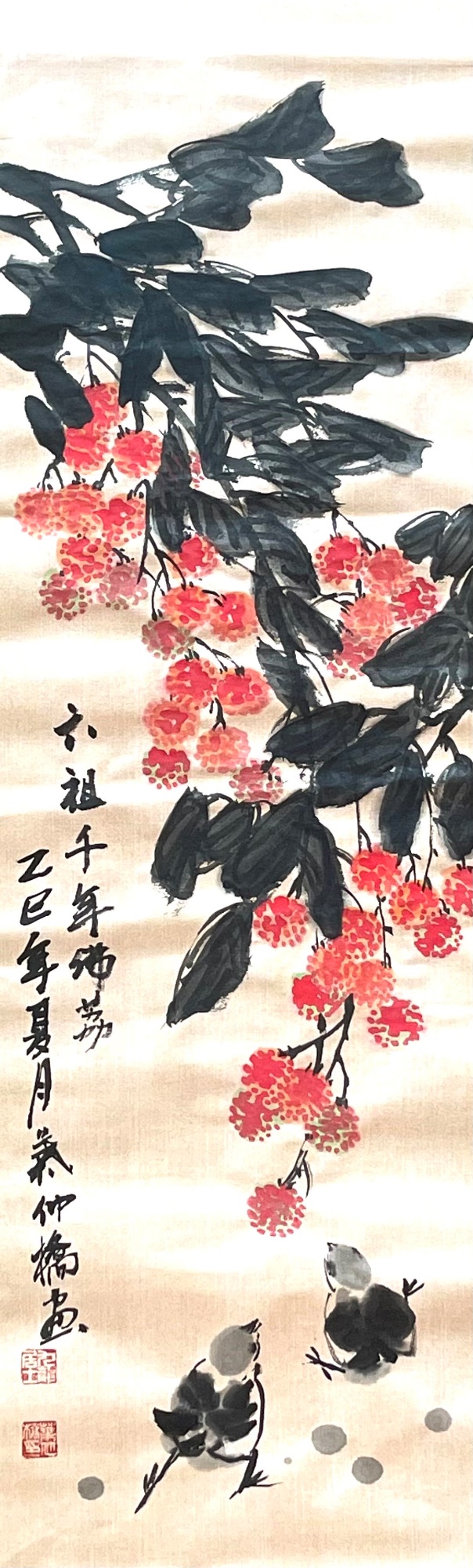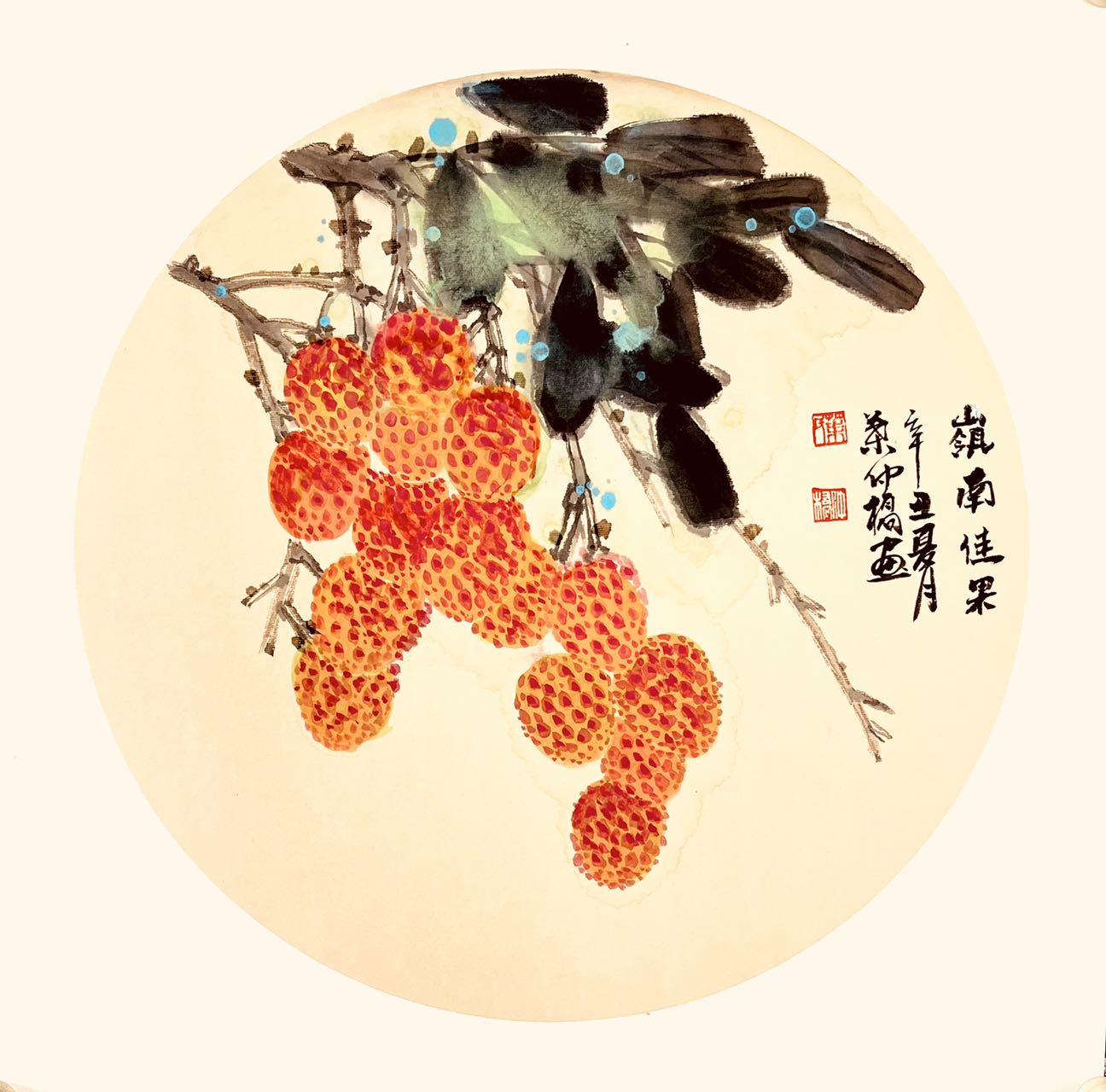 叶仲桥的艺术选择绝非偶然。岭南地区作为中国荔枝文化的发源地,荔枝早已融入当地人的血液与记忆。"日啖荔枝三百颗,不辞长作岭南人",苏轼的诗句道出了荔枝与岭南人身份的深刻联系。叶仲桥选择荔枝作为艺术表达的核心意象,本质上是对文化根脉的自觉追寻。在他的《荔园春色》《硕果累累》等作品中,荔枝不仅是植物学意义上的果实,更是岭南文化的浓缩符号——那饱满的形态象征着生命的丰盈,鲜红的色彩传递着热情的特质,密集的排列则隐喻着多子多福的传统愿望。通过艺术化的处理,叶仲桥将一种地方性水果提升为具有普遍审美价值的文化符号,完成了从物象到心象的升华。
