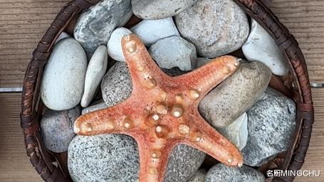 Noma 用豆蔻太妃糖和柚子藏红花釉料做成海星造型的小食,摆放在石块之上,每一只都是手工制成,想知道怎么做的吗?答案在下方视频中揭晓。