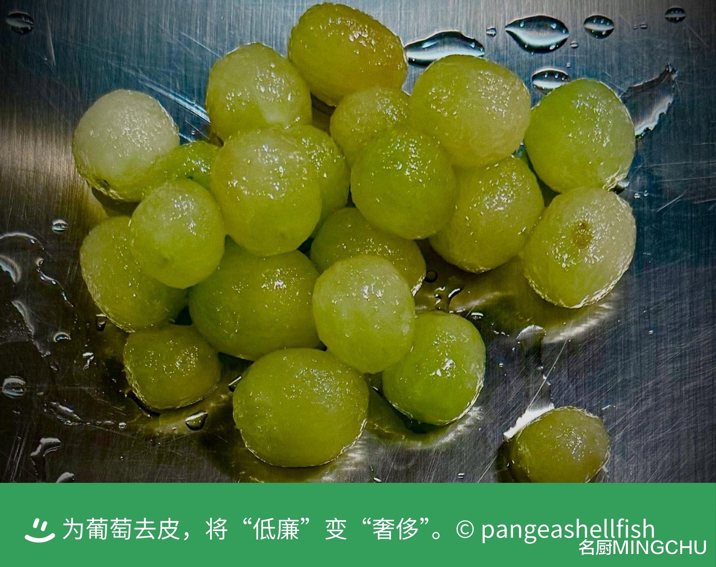 “20 年后,我们再次供应去皮葡萄,这次每道菜的份量是 9-11 颗。菜单上的名称写着‘去皮葡萄’,它是主要成分,是焦点,也是奢华。”