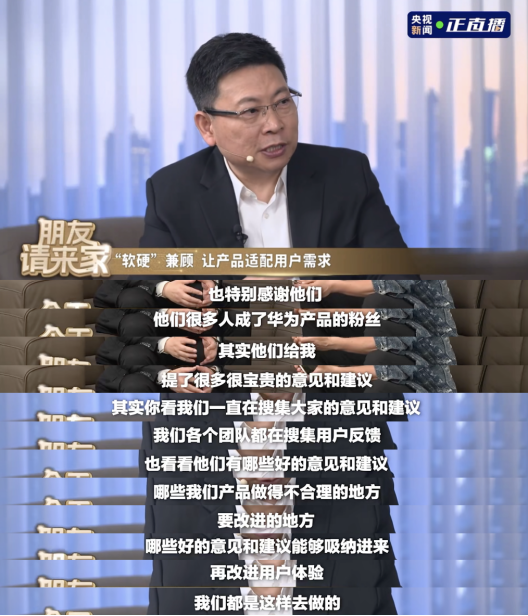 除此之外,余总还强调希望用户能提出更多意见和批评,华为会在参考用户反馈的基础上,不断对产品进行改进和创新,将更好的产品体验带给用户。