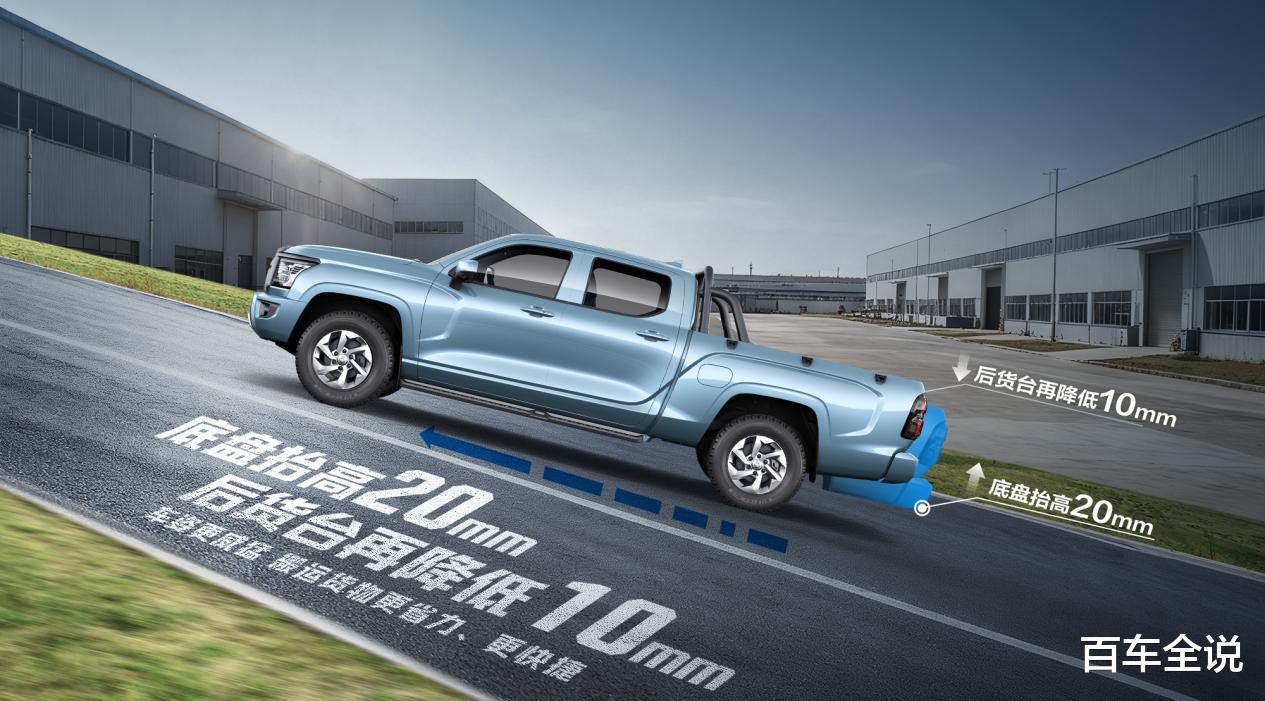 细节设计上,新车车姿抬高20mm,离地间隙最高达236mm,底盘通过性更强,车姿更威猛、更协调;低货台设计,货箱离地高度降低10mm,搬运货物更省力省时;更有同级唯一原厂货箱照明,无论是凌晨上货,还是晚市装卸运输,都保证货箱内清晰明亮,让装卸更安全高效。此外,自动挡全系标配10.25英寸高清大屏+倒车影像,流畅不卡顿;领航型搭载乘用车级车联网系统,可畅快体验智能语音、智能车控、智能导航、车载微信、抖音等服务功能。
