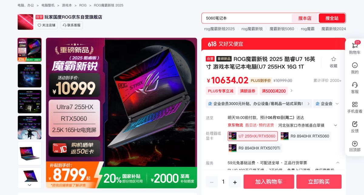 目前,ROG 魔霸新锐 2025 酷睿 U7 国补+618 综合优惠后到手价 8799,这个价格就不再是「败家之眼」了,而是「持家之眼」。如果最近有高性能笔记本的需求,千万不要错过。