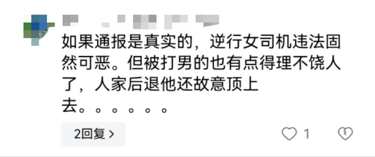 但还有网友则认为,打人女子逆行本身就是违反交通规则,而小伙顺向行驶没什么不妥的!