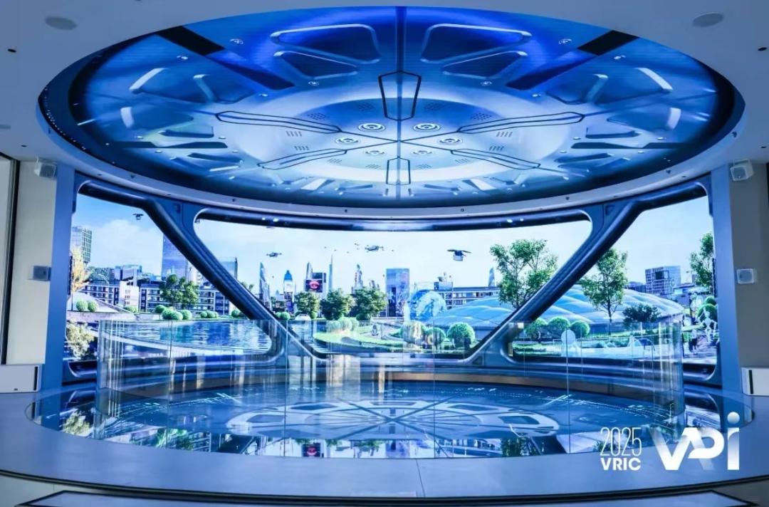 走进内部,“灵境飞舟”的主题徐徐展开。星际会场、光影前厅、碗幕沙盘、全息拆解的XR设备,以及悬空球幕飞行影院……空间计算、数字孪生等前沿技术被悄然融入各处,让访客在沉浸中触碰虚拟现实的轮廓。