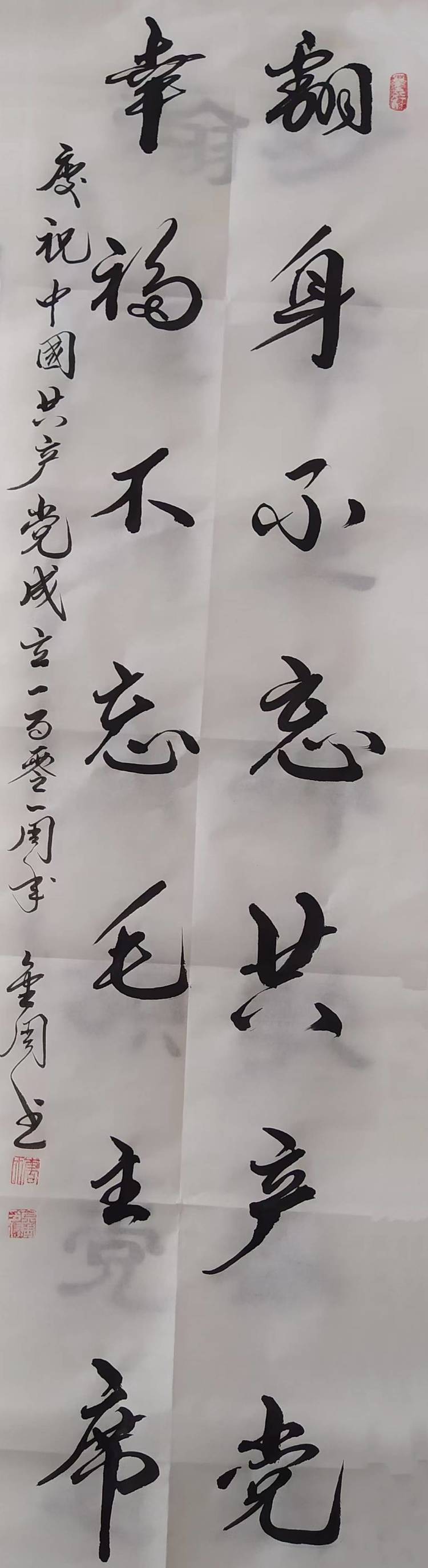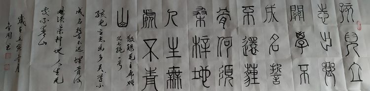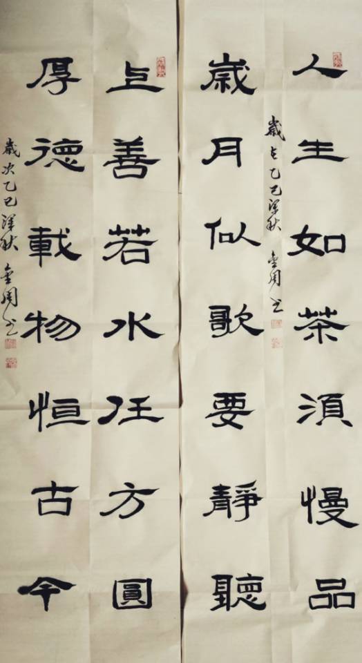 曹金周,男生于一九五四年三月,河北省沧州市海兴县人,自幼爱好书画,教过书,当过兵,退休后加入河北省毛体书法协会,多次参加国家省书展,并获奖。晚年又临习了《曹全碑》,爱上了隶书。