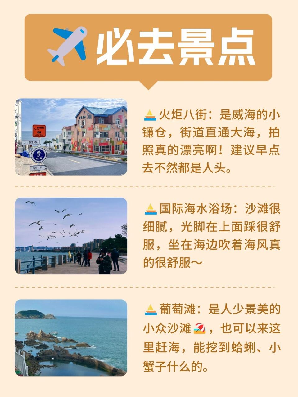 宝子们,威海超全旅游攻略来啦!10月份准备去威海的宝子直接抄作业就可以了!行程安排的明明白白💗