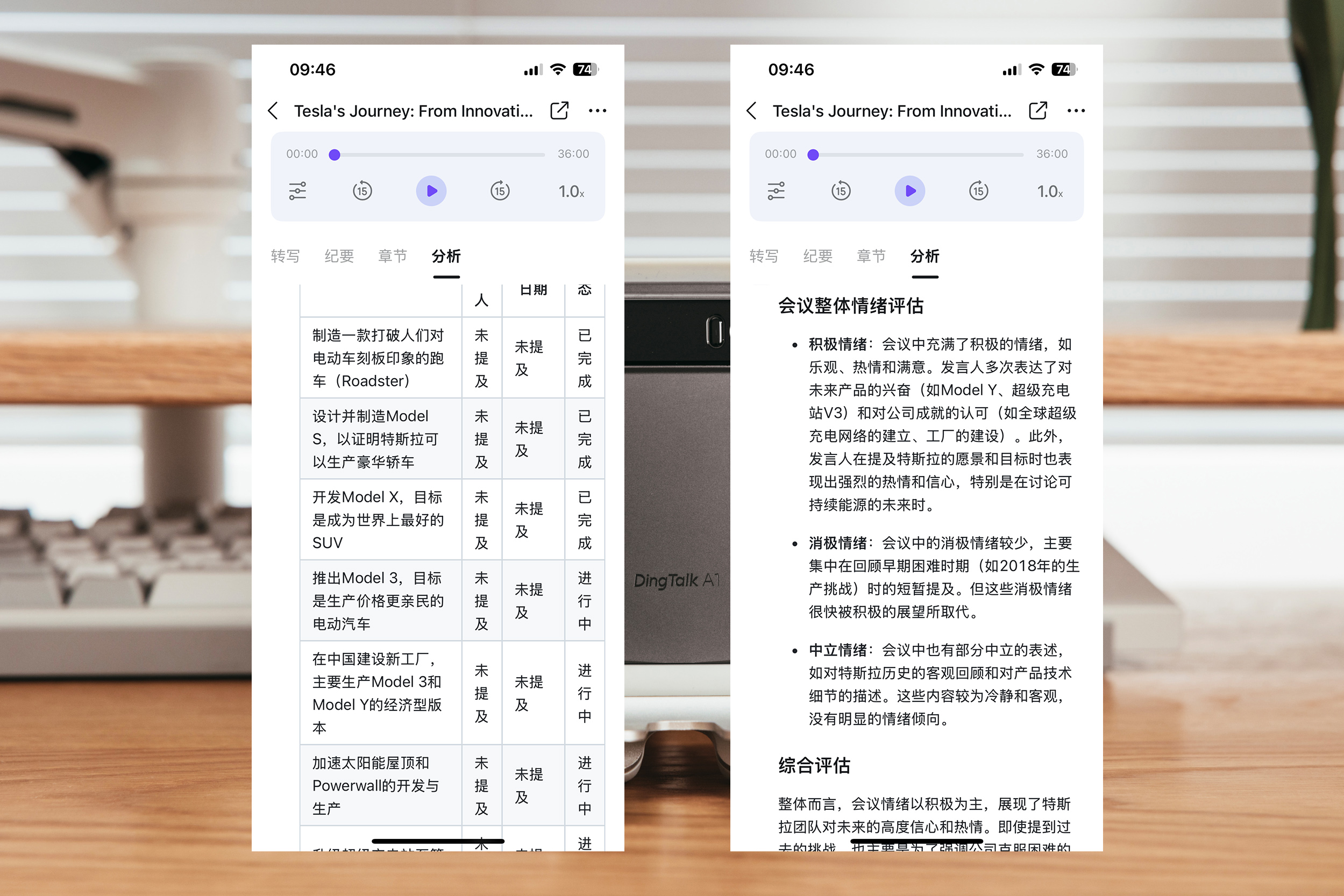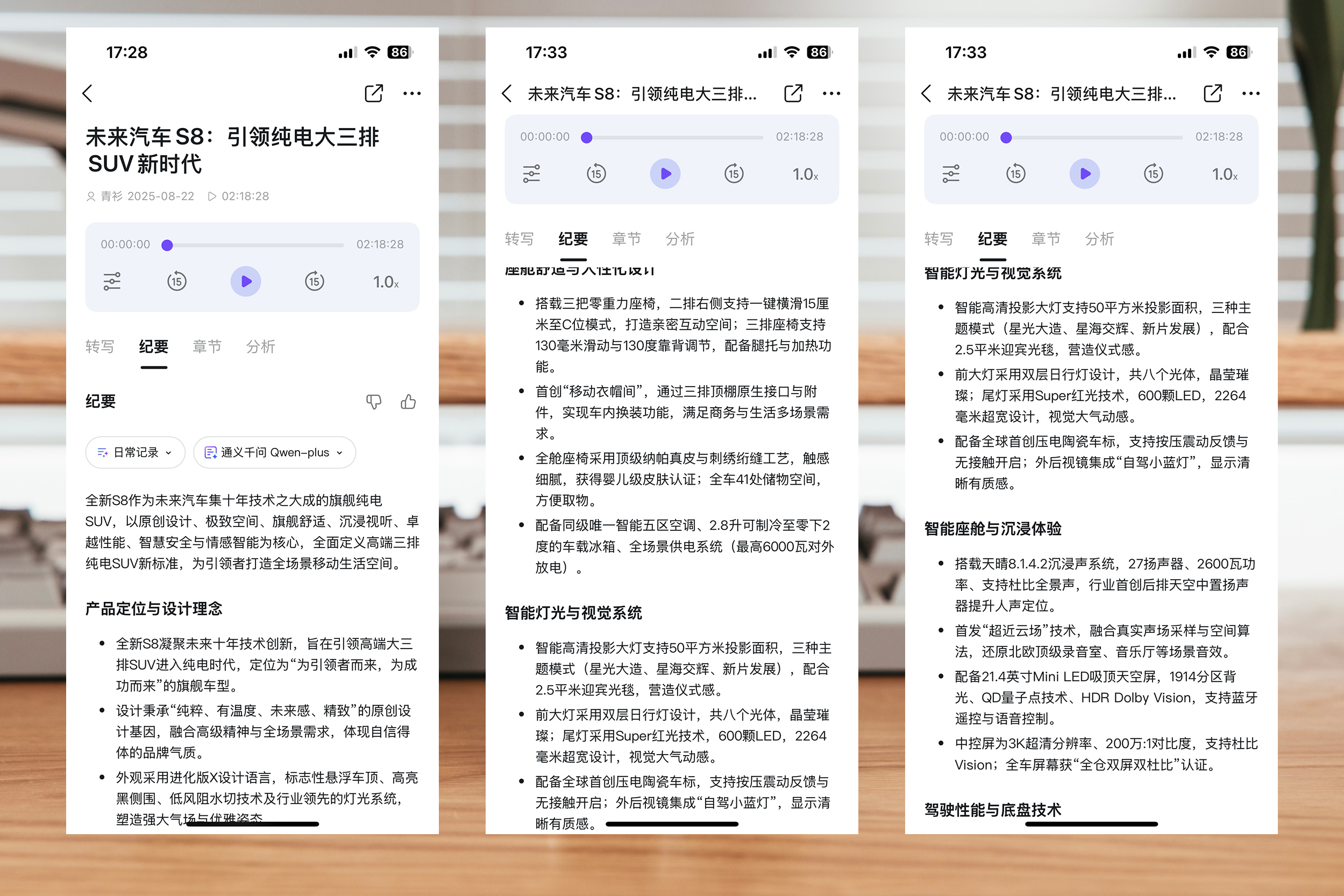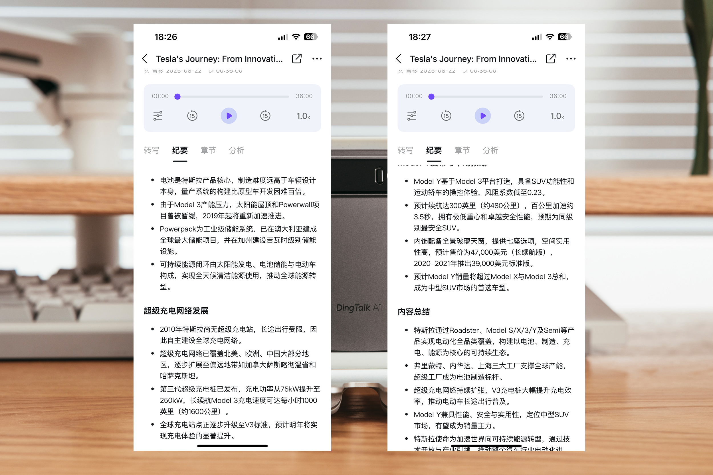 我选了最近蔚来的ES8发布会,李斌确实很能说,我为了完整的体会DingTalk A1的功能,也是从头到尾看完了发布会。