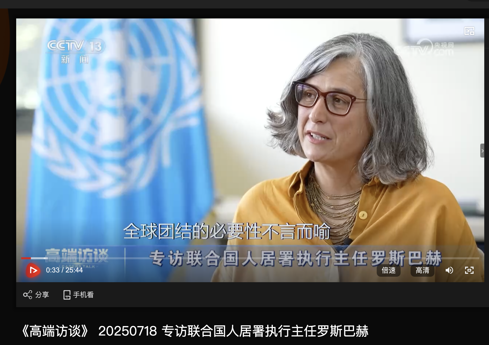 各位要是感兴趣,可以搜一下总台的《高端访谈》20250718 专访联合国人居署执行主任罗斯巴赫。