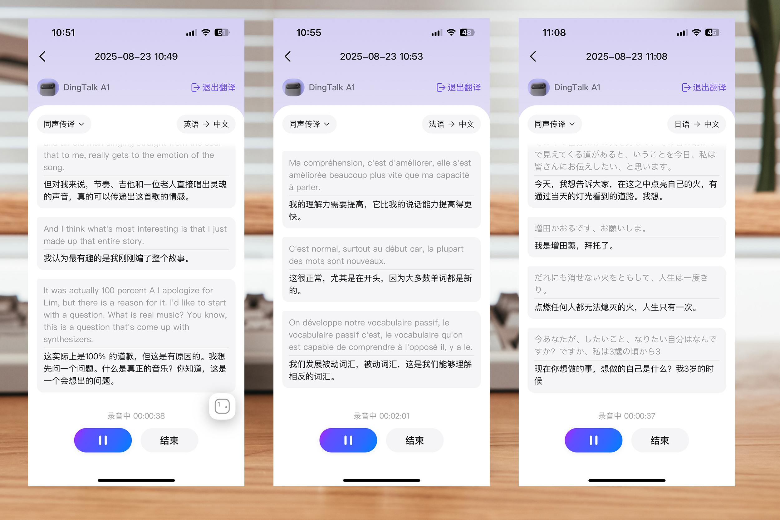 常见的语言也是通吃,可以实时翻译或者同声传译,延迟低,准确性还不错,日常旅游留学,外企中工作交流,商务差旅都可以带上这个小小的设备,能解决很多问题。